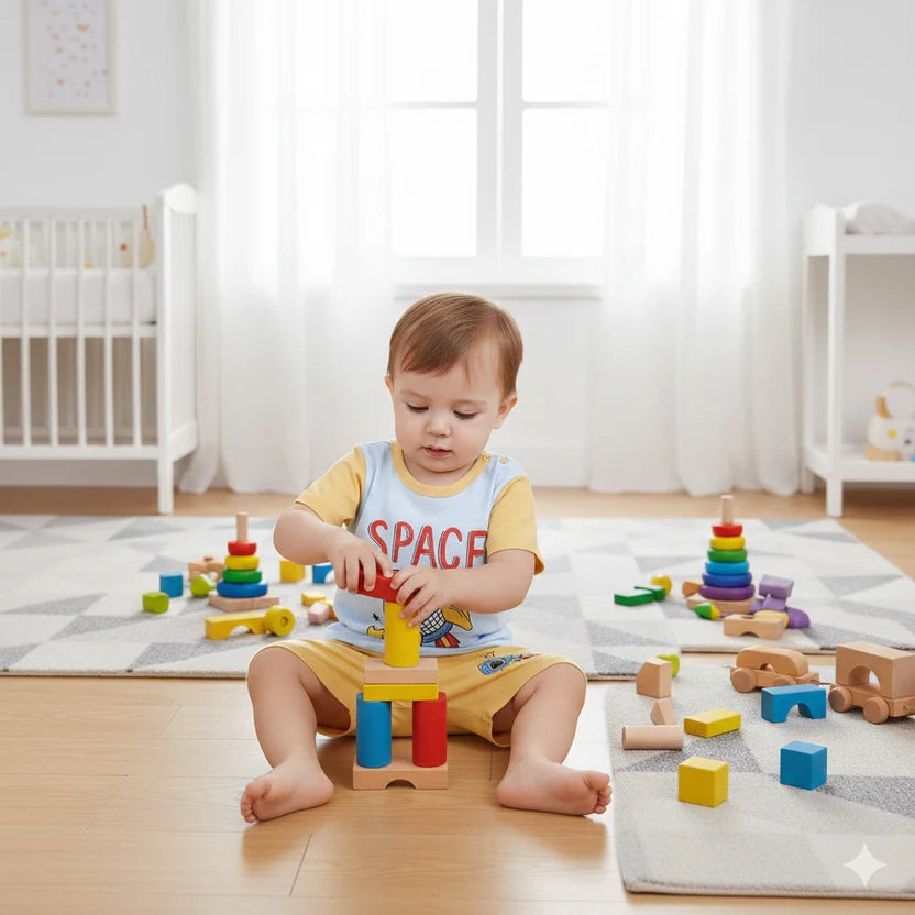 Sky Blue Rocket Printed Kids Short Sleeve Kids Wear