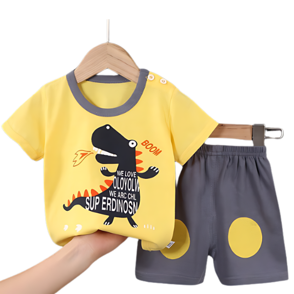 Yellow Boom Dino Printed Kids Short Sleeve Kids Wear